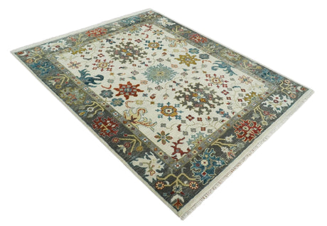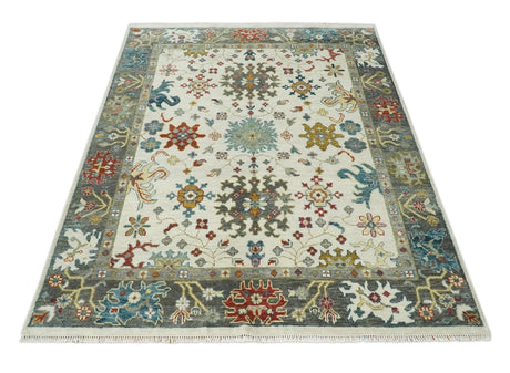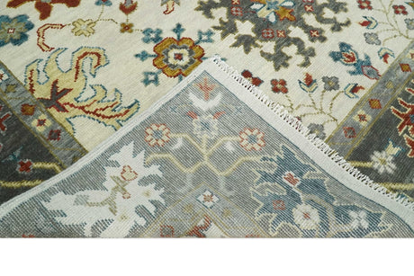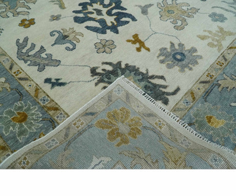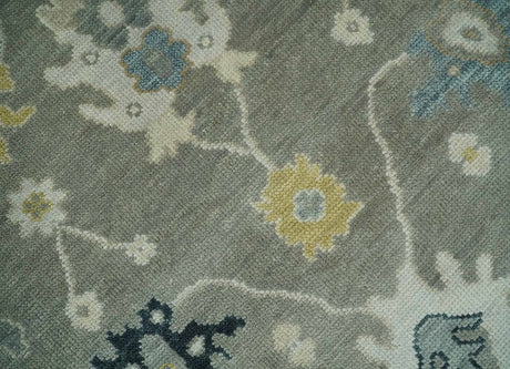 Ivory and Gray Floral Oushak Hand Knotted Custom Made Wool Area Rug