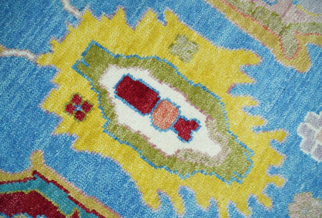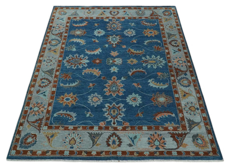 Blue, Rust and Aqua Hand Knotted Floral Multi Size Oushak Wool Area Rug