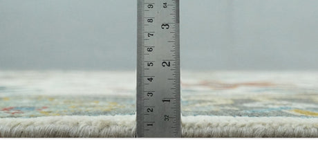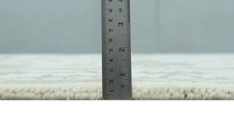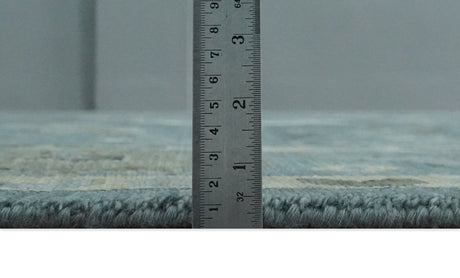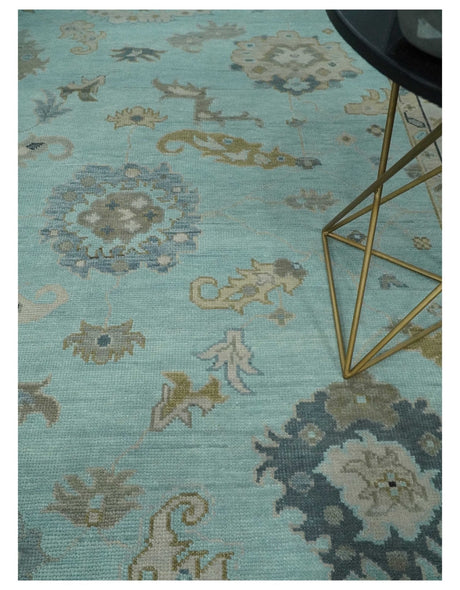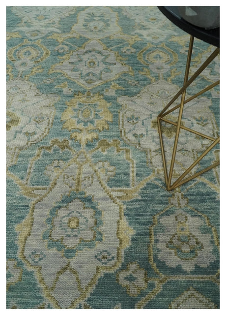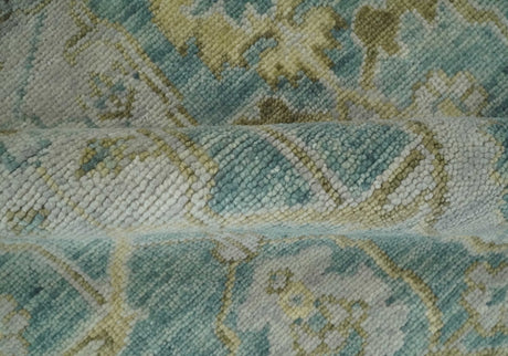 Hand Knotted Aqua, Beige and Ivory Traditional Oushak Wool Rug