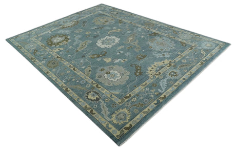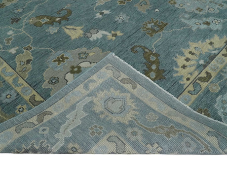 Hand Knotted Traditional Turkish Teal Oushak Wool Rug