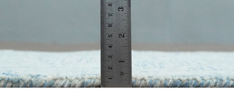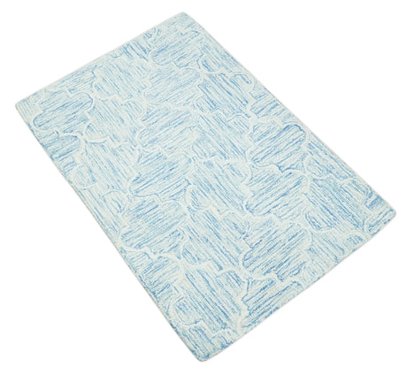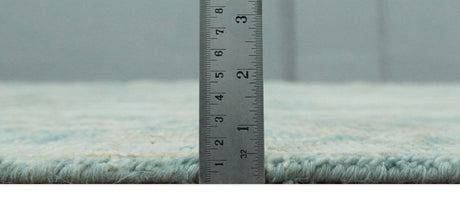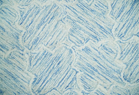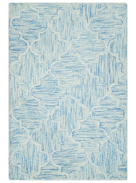 Custom Made Ivory and Blue Modern Geometric Hand Tufted Natural Wool Area Rug