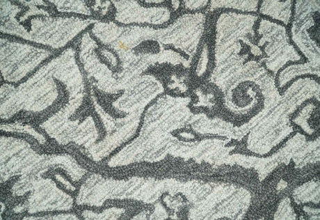Floral Ivory and Charcoal Wool Hand Woven Layering Multi Size Area Rug