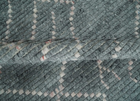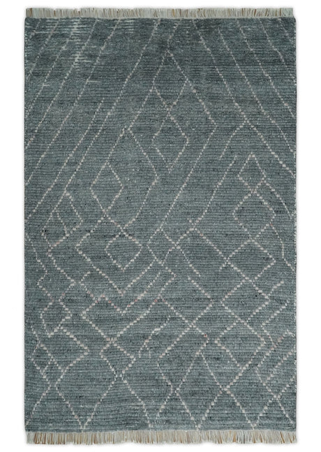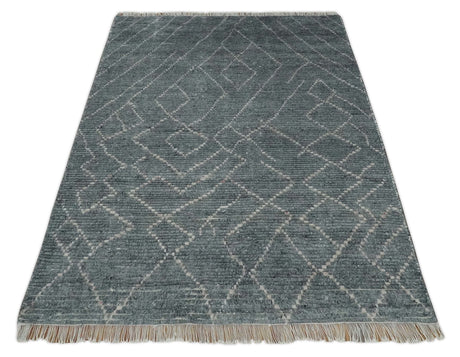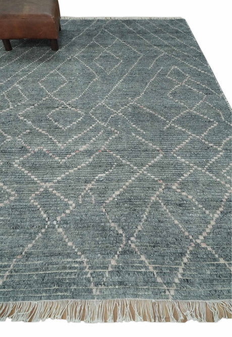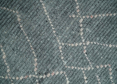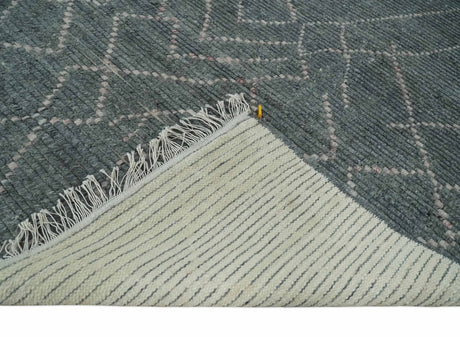 Custom Made Hand Knotted Charcoal and Ivory Moroccan Trellis Rug