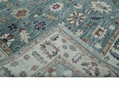 Blue and Ivory Hand Knotted Traditional Oushak Multi Size Wool Area Rug