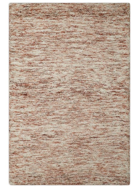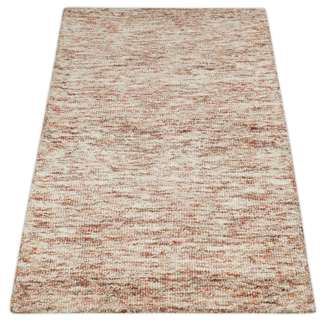 Beige and Ivory Shaded Solid Wool Hand Woven Multi Size Rug