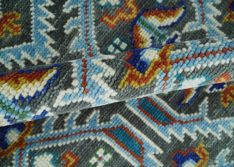Charcoal, Blue and Ivory Traditional Hand Knotted Multi Size Wool area Rug