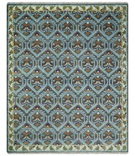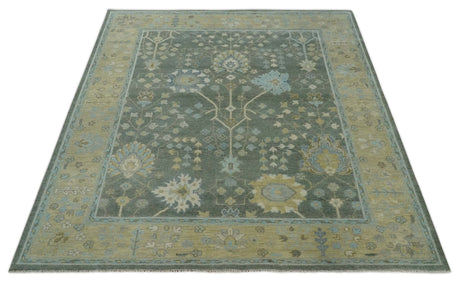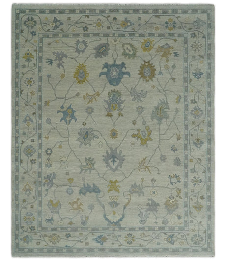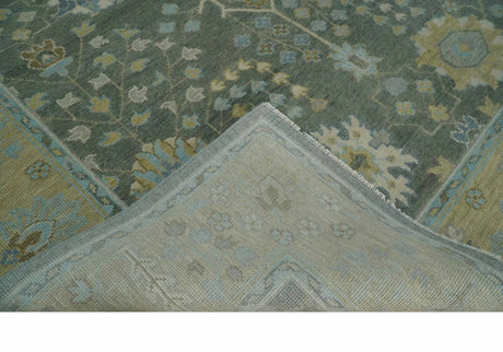 Gray and Olive Wool Colorful Hand knotted Traditional Oushak Multi Size wool Area Rug