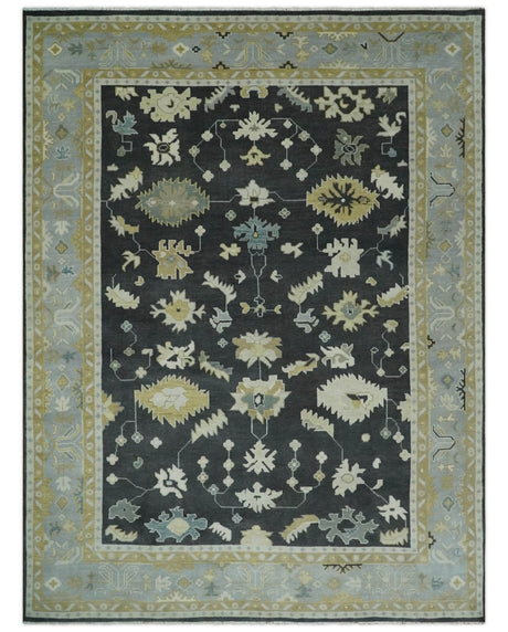 8x10, 9x12, 10x14 and 12x15 Hand Knotted Black, Beige and Silver Traditional Oushak Wool Rug