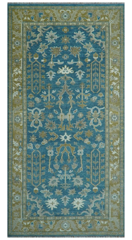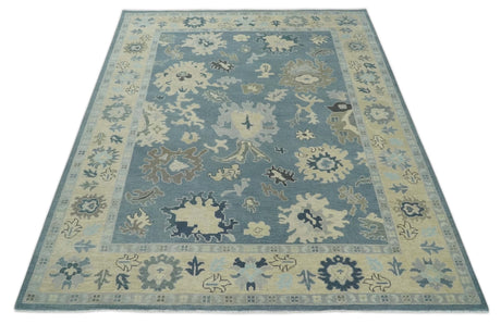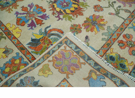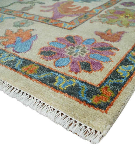 Ivory and Blue Vibrant Colorful Hand knotted Traditional Oushak Multi Size wool Area Rug