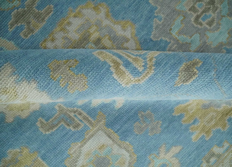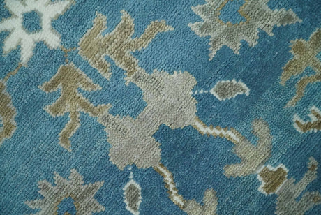 Blue, Silver and Brown Hand Knotted Traditional Oushak wool Rug