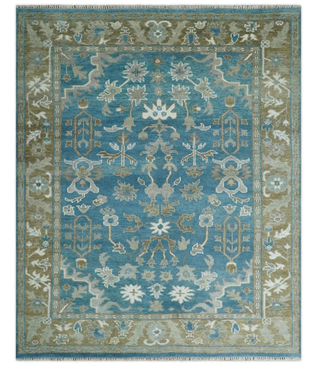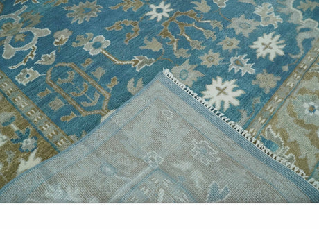 Custom Made Blue, Brown and Ivory Hand knotted Traditional Oushak Wool Rug