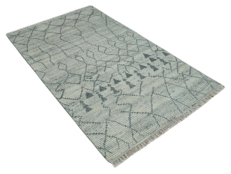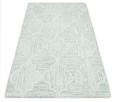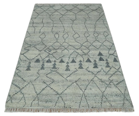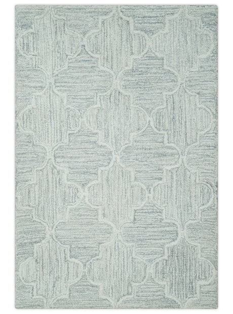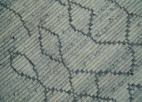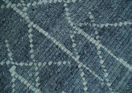 Hand Knotted Blue and Silver Trellis Moroccan Rug Made with Blended Wool Multi size Rug