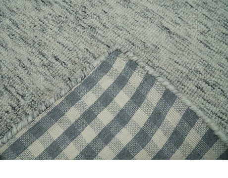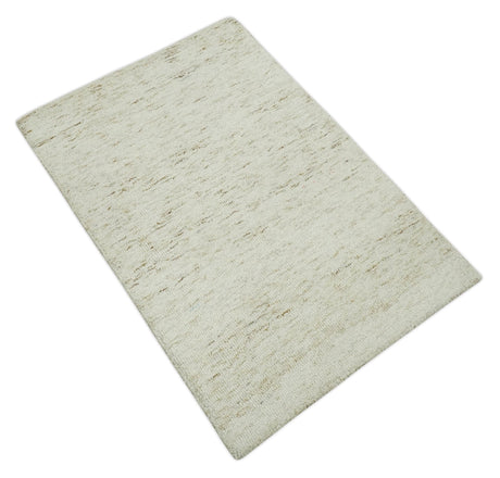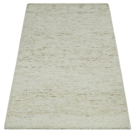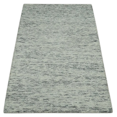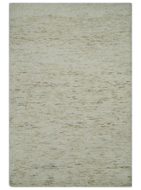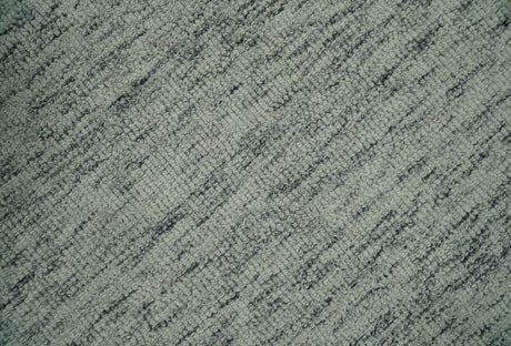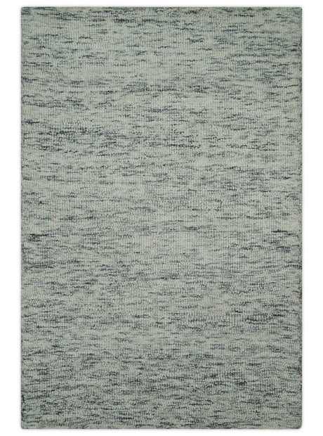 Modern Beige and Charcoal Solid Shaded Hand Tufted Natural Wool Area Rug