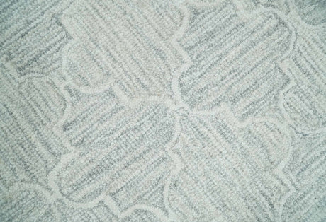 Custom Made Ivory and Silver Modern Geometric Hand Tufted Natural Wool Area Rug