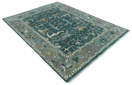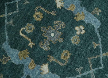 Hand Knotted Teal, Blue and Ivory Traditional Oriental Oushak Multi Size Wool Area Rug