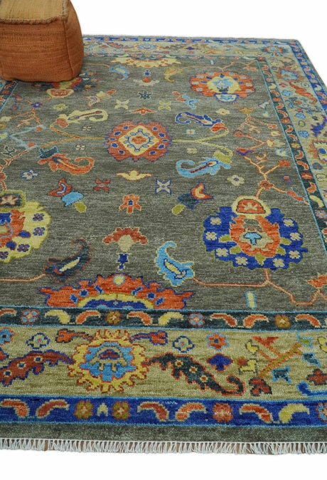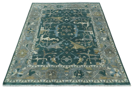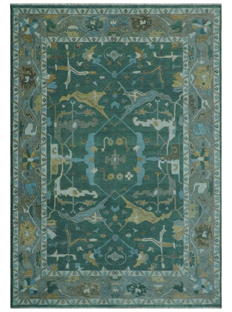 Hand Knotted Oriental Oushak Green and Gray Multi Size Wool Area Rug