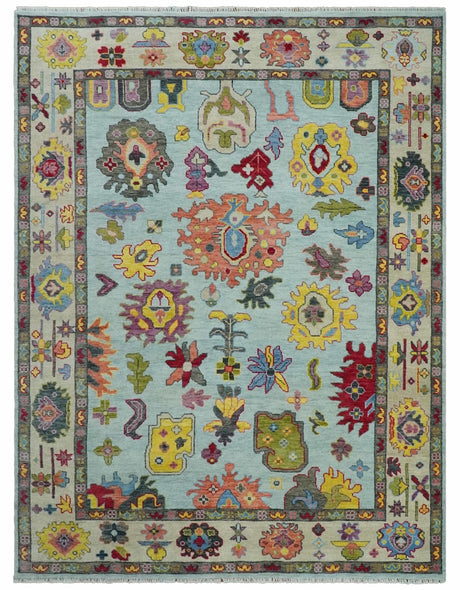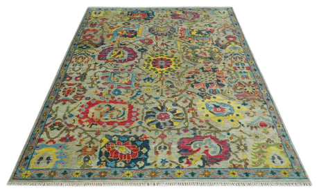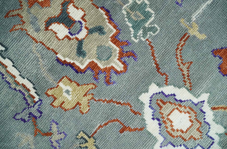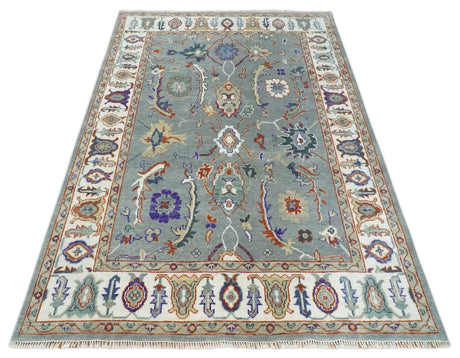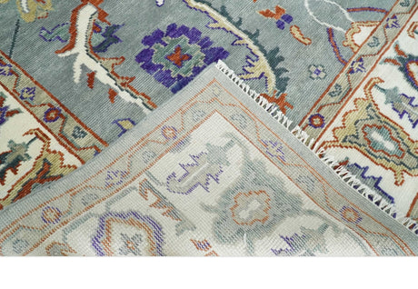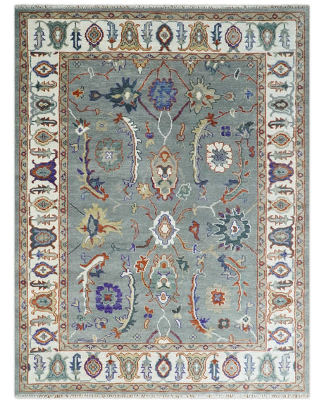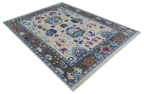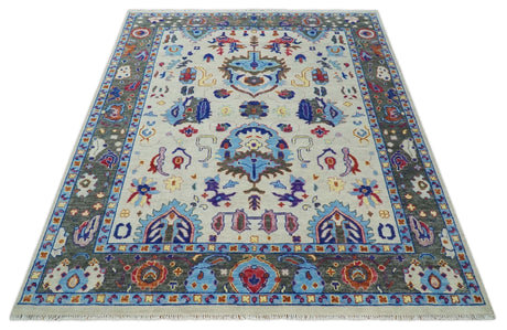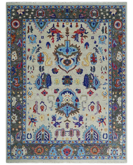 Custom Made Ivory and Gray Vibrant Colorful Hand knotted Traditional Oushak wool Area Rug