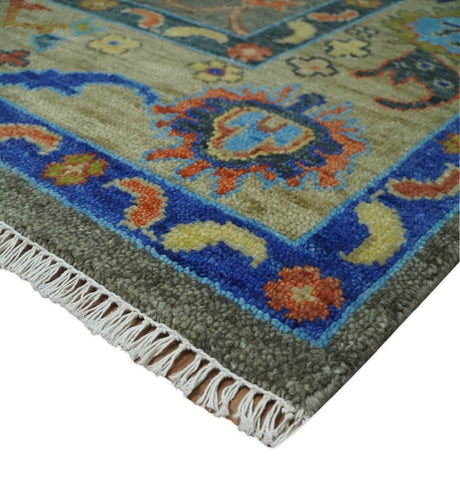 Traditional Blue and Camel Colorful Hand knotted Oushak Custom Made Wool Area Rug