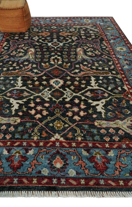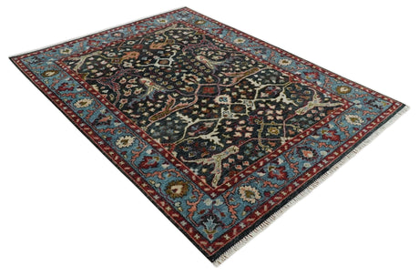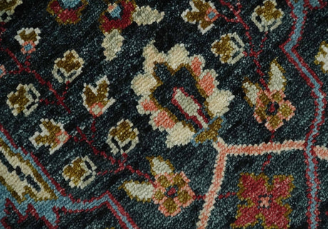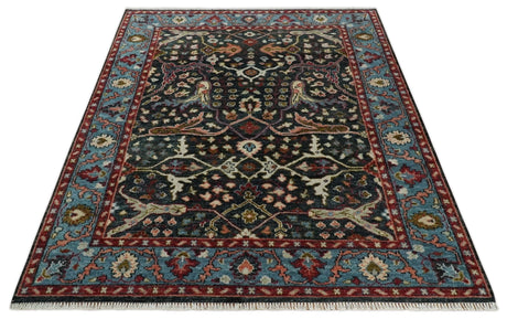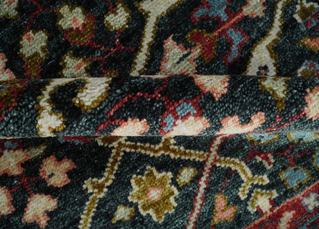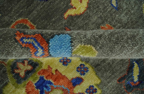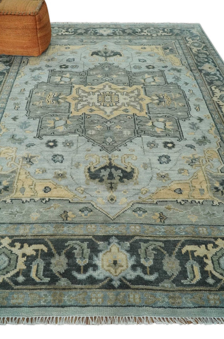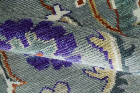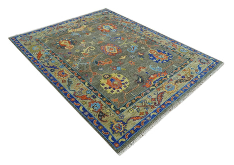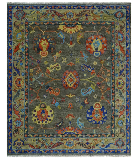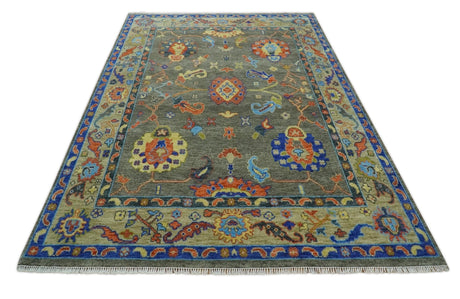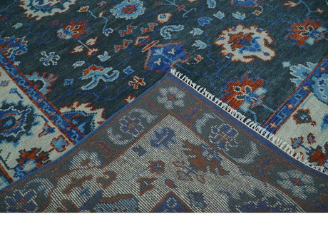 Charcoal and Blue Hand Knotted Oushak Multi Size Wool Area Rug