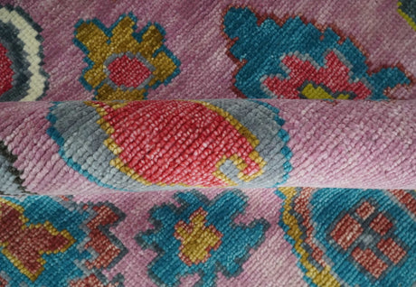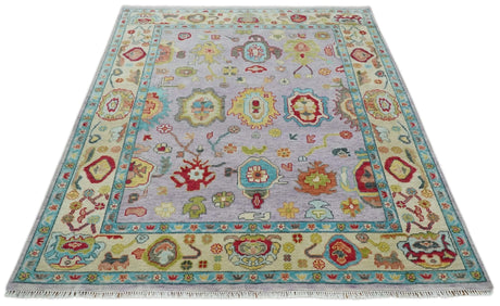 Purple and Beige Vibrant Colorful Hand knotted Traditional Oushak Multi Size Area Rug