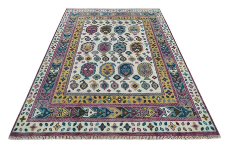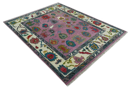 Custom Made Purple and Ivory Vibrant Colorful Hand knotted Traditional Oushak wool Area Rug
