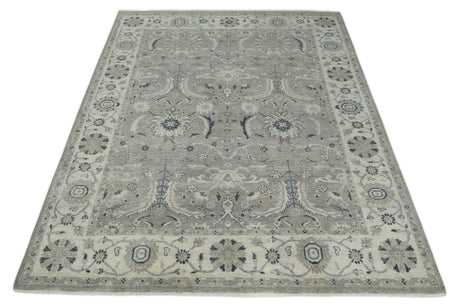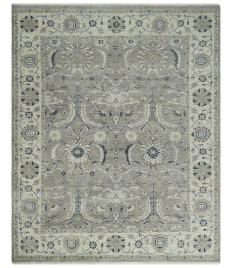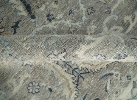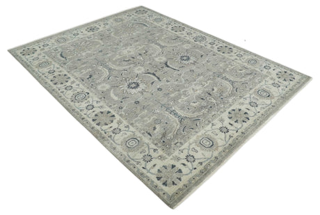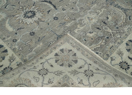 Hand Knotted Gray and Ivory Traditional Oriental Oushak Wool Area Rug