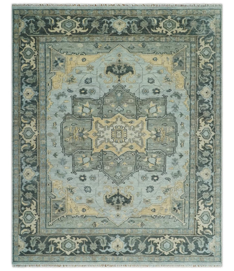 Custom made Beige, Gray and Charcoal Hand Knotted Antique look Traditional Heriz Serapi Wool Rug