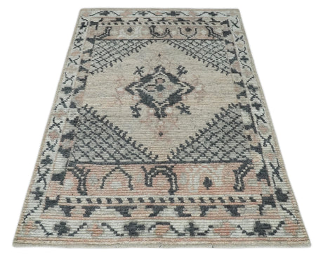 Hand Woven Peach, Beige and Charcoal Rug Made with Blended Wool Multi Size Rug