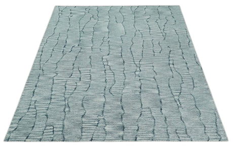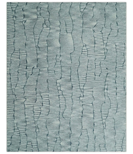 Modern Contemporary Multi Size Woolen White and Blue Hand Tufted Area Rug