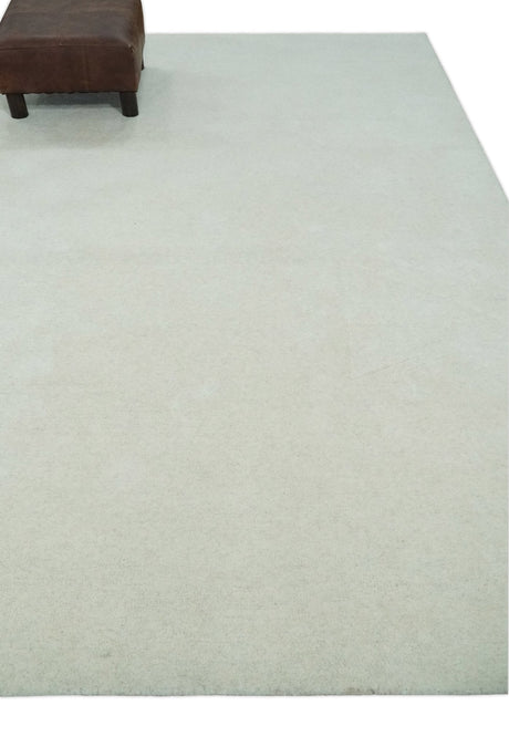 Custom Made Solid Ivory White Hand Tufted Layering Rug