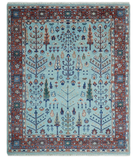 Tree of Life Hand Knotted Blue and Rust Modern Persian Vintage Oushak Custom Made Wool Rug