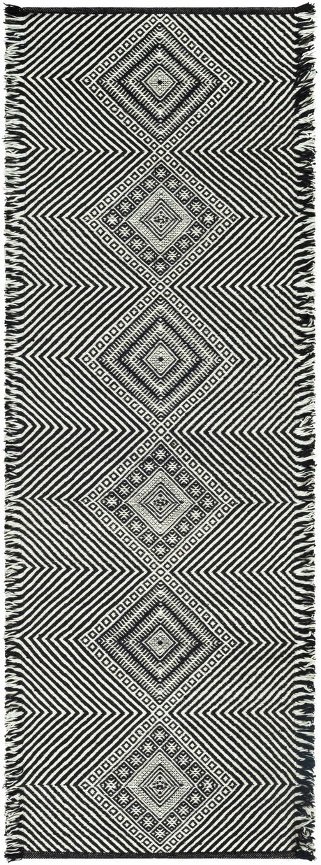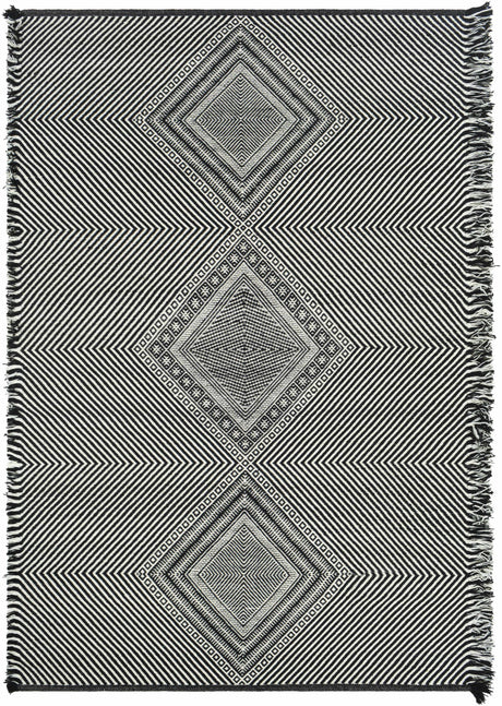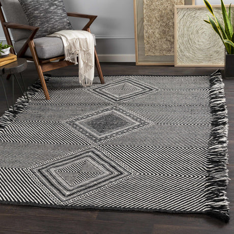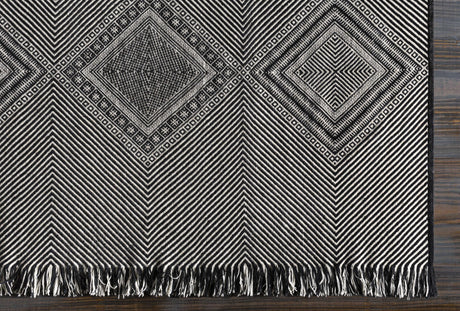 Eaglesham Black&White Flatweave Tassel Wool Rug - Clearance