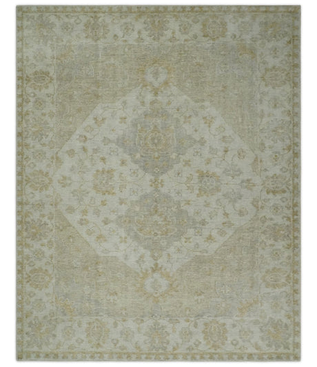 Hand Knotted Antique Olive and Ivory Traditional Persian Vintage Oushak Wool Rug | TRDCP707