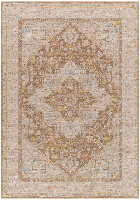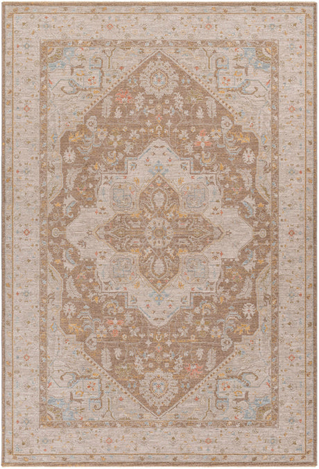Ivory and Brown distressed finished Traditional Floral Low Pile Multi Size wool Area Rug