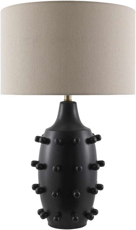 Dark Gray Rustic Table Lamp with linen details for bedside or console tables