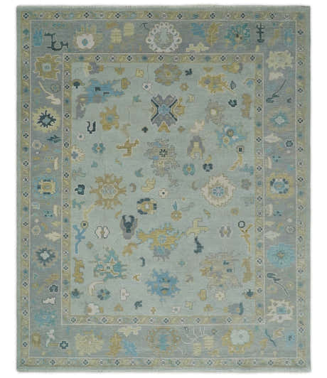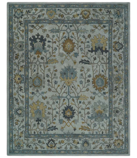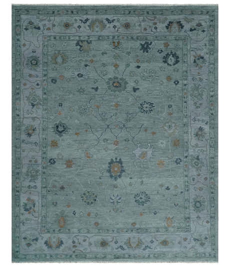 Hand Knotted Charcoal and Aqua Traditional Multi Size Oushak Wool Area Rug