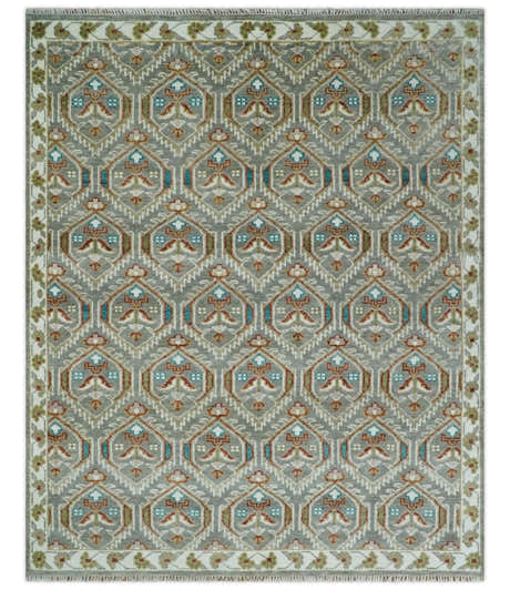 Antique look Traditional Hand Knotted Silver, Ivory and Rust Multi Size Area Rug