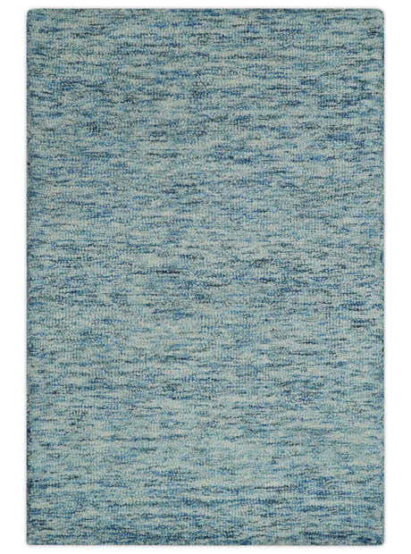 Custom Made Blue and Ivory Shaded Solid Wool Hand Woven Layering Area Rug