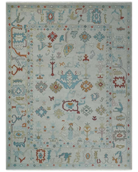 Antique Silver and Gold Vibrant Colorful Hand knotted Oushak wool Area Rug