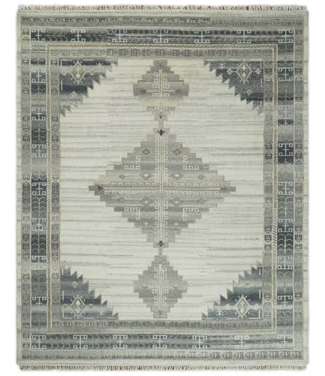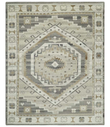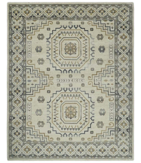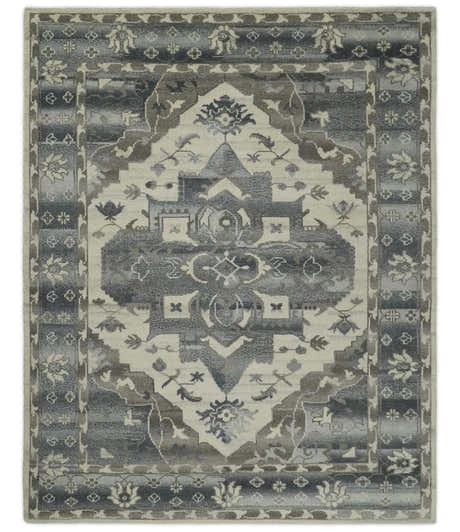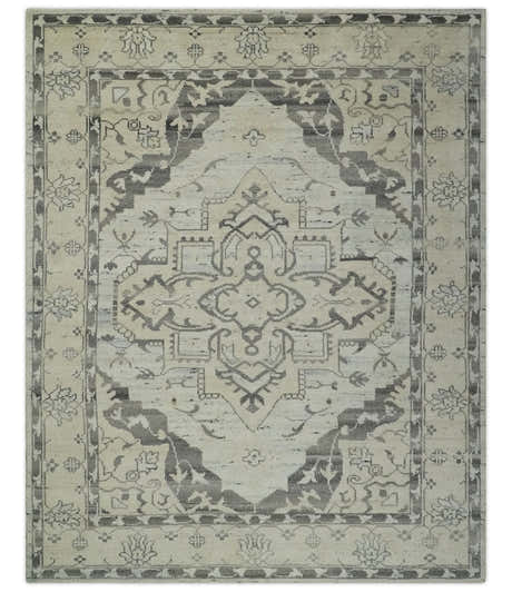 Hand Knotted Multi size Ivory, Silver and Charcoal Antique Turkish Oushak Wool Area Rug
