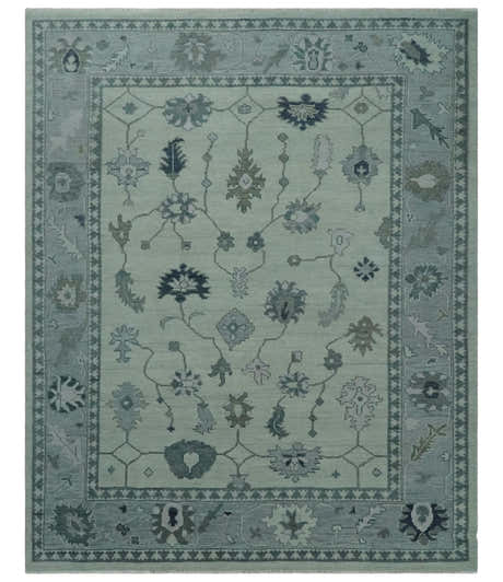 Antique multi size Hand Knotted Beige and Silver Traditional Floral Oushak wool Area Rug