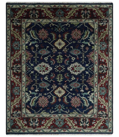 Hand Knotted Blue, Ivory and Maroon Oriental Oushak Multi Size Traditional Wool Area Rug