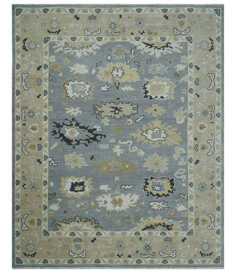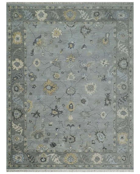 Custom made Antique style Blue and Silver Hand Knotted Oushak Wool Area Rug