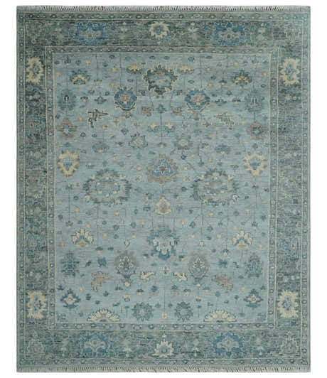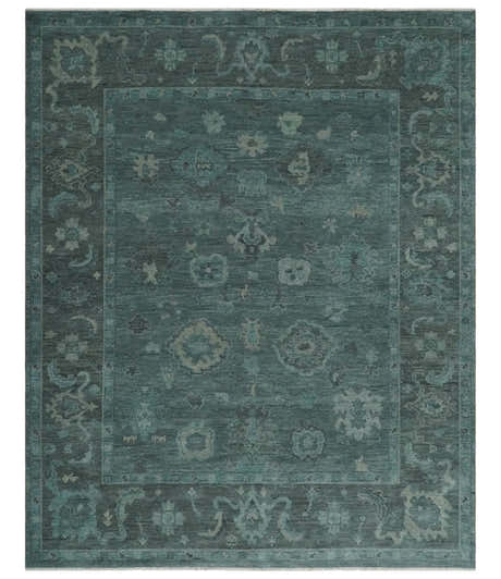Custom Made Blue and Green Hand knotted traditional Oushak wool Area Rug