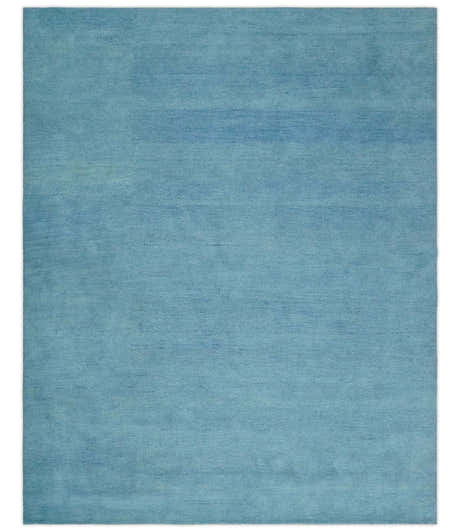 Custom Made Hand Tufted Solid Plane Light Blue Woolen wool Area Rug
