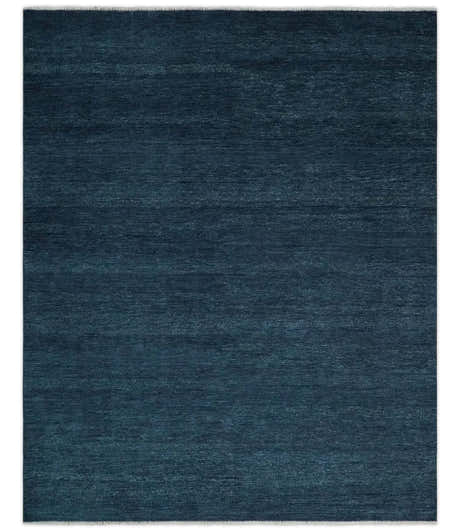 Custom Made Midnight blue Solid Hand knotted Modern wool Area Rug