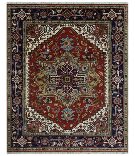 Custom Made Rust, Mustard, Ivory and Blue Hand Knotted Traditional Wool Area Rug