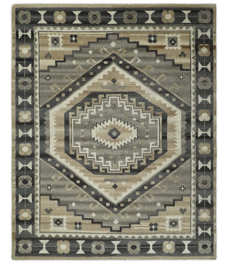 Hand Tufted Gray, Beige and Accent Blue Multi Size 8x10 Traditional Herati Design Wool Rug