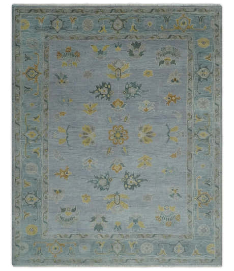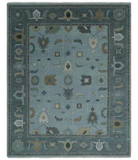Bluish Gray and Aqua Hand knotted Oriental Oushak Custom Made wool Area Rug