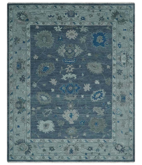 Dark Teal, Silver, Blue and Ivory Hand Knotted Traditional Oushak Multi Size Area Rug